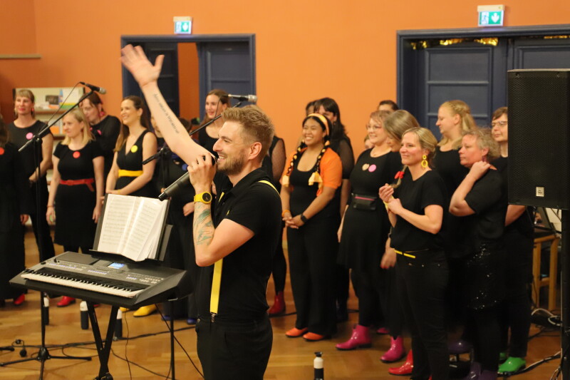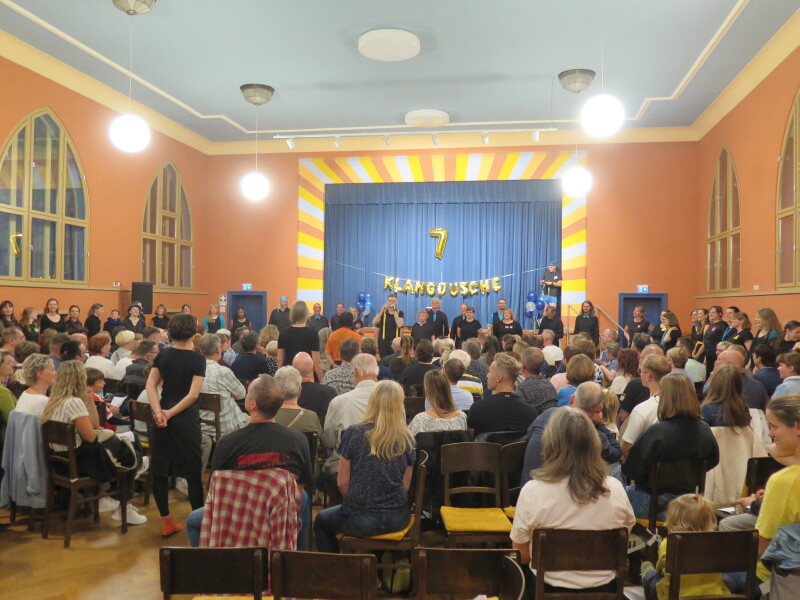 Beim Projekt „Klangdusche meets InTakt“ trafen der hallesche Frauen-Popchor Klangdusche Halle und das Magdeburger Vokalensemble InTakt für ein gemeinsames Konzertprojekt aufeinander. Unterstützt durch eine Förderung des MikroKulturFonds Sachsen-Anhalt konnte die Kooperation im Rahmen des Geburtstagskonzerts der Klangdusche in Halle (Saale) ermöglicht werden: rund 150 Besucherinnen und Besucher erlebten ein abwechslungsreiches Programm mit mehrstimmigen Pop-Arrangements, Bodypercussion und kommunikativen Konzertmomenten.
